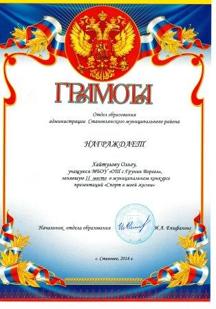 Роль спорта в жизни каждого человека огромна, ведь движение - это жизнь. Ученица 2 класса Хайтулова Ольга с презентацией о своей любимой игре - футболе заняла второе место в номинации "Навстречу Чемпионата мира по футболу", ученица 7 класса Любимова Алина с презентацией о параолимпийских играх - первое место в номинации "Параолимпийское движение".